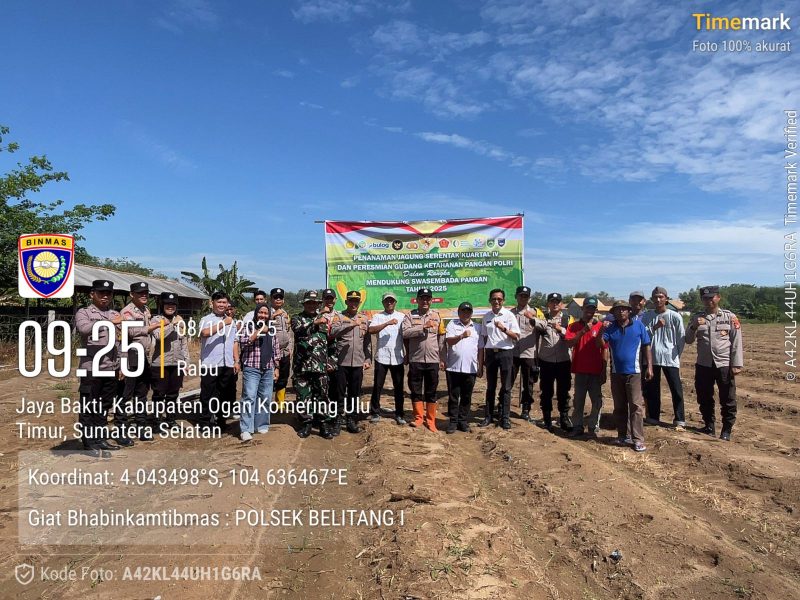 OKU Timur – Dalam rangka mendukung program Ketahanan Pangan Polri serta menindaklanjuti instruksi Presiden RI tentang penguatan sektor pertanian menuju Indonesia Emas 2045, Polsek Belitang I Polres OKU Timur menggelar Zoom Meeting dan Penanaman Jagung Serentak Kuartal IV, pada Rabu (08/10/2025) sekira pukul 14.00 WIB.
