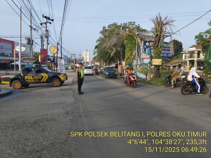 BELITANG I – Upaya Polsek Belitang I dalam memberikan pelayanan prima kepada masyarakat kembali diwujudkan melalui pelaksanaan kegiatan pengaturan strong point pada Sabtu, 15 November 2025. Kegiatan dimulai sejak pukul 06.30 WIB dan berfokus di Jln Raya Belitang, tepatnya di Simpang 4 Tugu KTM, salah satu titik rawan kepadatan arus kendaraan pada pagi hari.