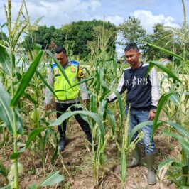 Lahan seluas 25 meter x 35 meter milik bapak Rahmat, petani berusia 38 tahun, saat ini ditanami jagung varietas unggul yang sedang memasuki masa pertumbuhan. Brigpol Panji memastikan tanaman dalam kondisi sehat dan memberikan sejumlah masukan terkait perawatan tanaman, seperti penyiraman yang cukup dan pengendalian hama secara alami.