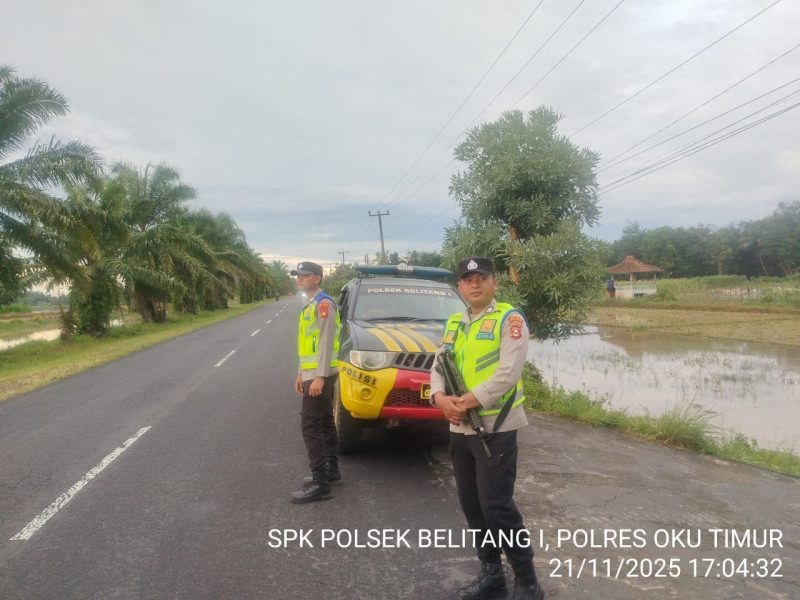 OKU Timur – Guna menciptakan situasi kamtibmas yang kondusif, Polsek Belitang I melaksanakan giat Patroli Sore pada Jumat, 21 November 2025. Patroli yang dimulai pukul 16.30 WIB ini menyasar dua lokasi strategis: Jalan Raya BK 8 Desa Sumber Suko Jaya dan Jalan Raya BK 8 Desa Karang Kemiri.