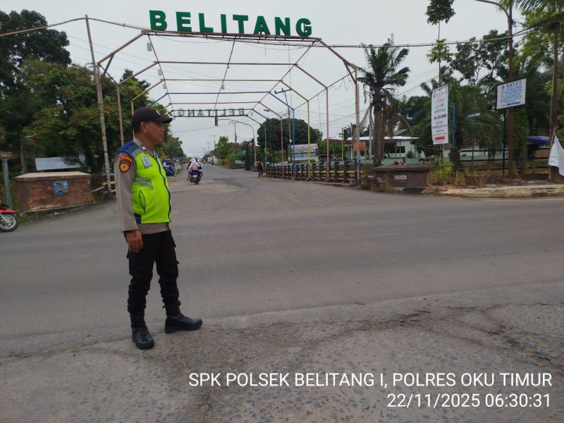 OKU Timur – Dalam upaya menjaga keamanan, ketertiban, serta kelancaran aktivitas masyarakat pada jam sibuk pagi, Polsek Belitang I melaksanakan kegiatan Pengaturan Strong Point pada Sabtu, 22 November 2025. Kegiatan dimulai sekitar pukul 06.30 WIB dan berlangsung hingga seluruh arus lalu lintas kembali normal.