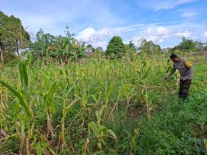 OKU Timur, 25 November 2025 — Wujud nyata dukungan terhadap ketahanan pangan terus dilakukan Bhabinkamtibmas Polsek Cempaka. Kali ini, Bripka Marlan Ahadi mendampingi warga binaan dalam pemantauan dan pengecekan lahan jagung milik Sdr. Darto di Desa Kuripan, Kecamatan Cempaka, Kabupaten OKU Timur.