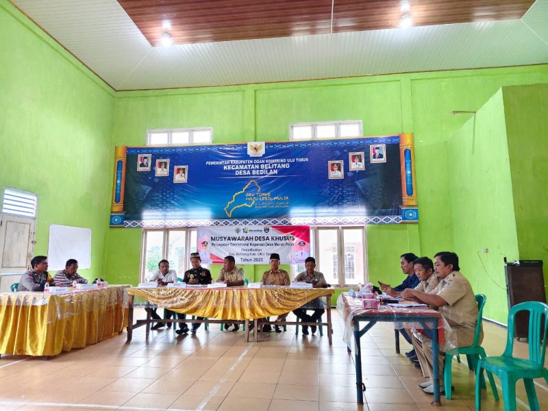 Bedilan, OKU Timur – Semangat gotong royong dan kemandirian ekonomi masyarakat Desa Bedilan, Kecamatan Belitang, Kabupaten OKU Timur, memancar kuat dalam agenda Musyawarah Desa Khusus (Musdessus) yang digelar bersejarah pada Selasa, 25 November 2025. Bertempat di Gedung Serbaguna Desa Bedilan, kegiatan yang berlangsung dari pukul 09.00 hingga 13.00 WIB ini adalah titik balik penentuan nasib Koperasi Desa Merah Putih.