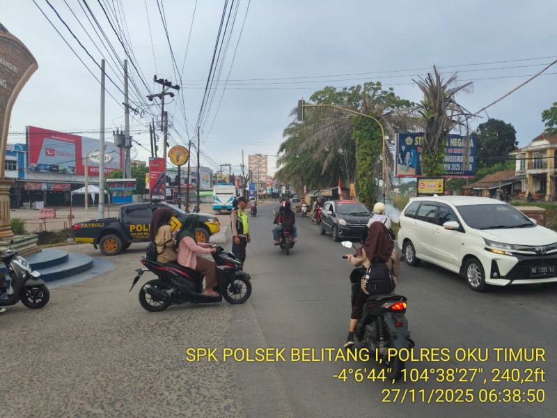 Polsek Belitang I Polres OKU Timur kembali mempertegas komitmennya dalam memberikan pelayanan terbaik kepada masyarakat melalui kegiatan rutin Pengaturan Strong Point pada Kamis, 27 November 2025. Di tengah meningkatnya mobilitas pada jam-jam sibuk, kehadiran personil kepolisian sejak pukul 06.30 WIB menjadi faktor penting terciptanya kelancaran arus lalu lintas yang aman dan tertib.