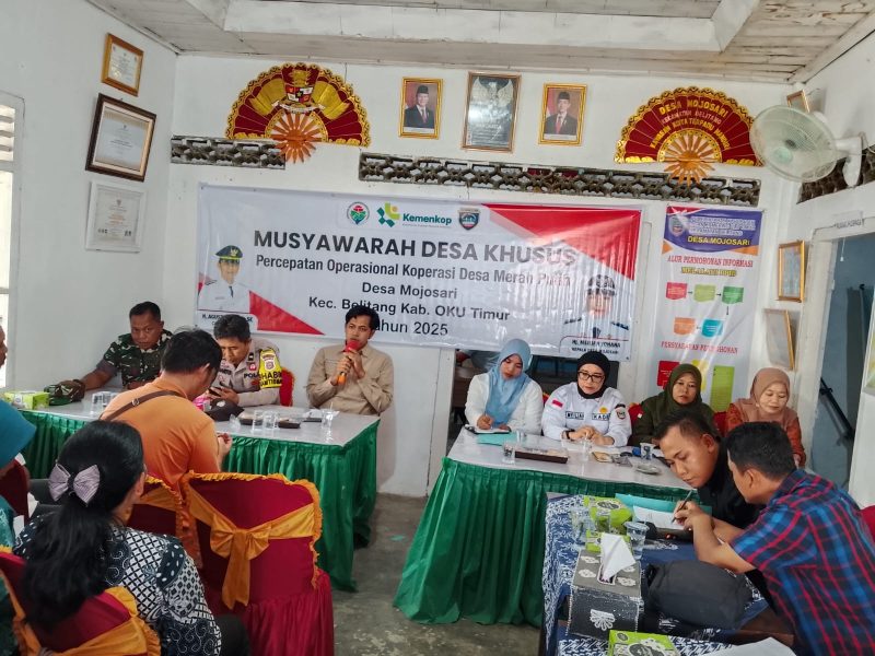 Mojosari, Belitang – Jumat (28/11/2025) menjadi hari bersejarah bagi Desa Mojosari, Kecamatan Belitang, OKU Timur. Bertempat di Gedung Serbaguna, agenda Musyawarah Desa Khusus (Musdesus) Percepatan Operasional Koperasi Desa Merah Putih berhasil dilaksanakan dengan lancar dan dihadiri oleh seluruh elemen penting desa dan kecamatan.