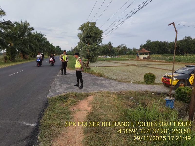 Belitang – Dalam rangka menjaga stabilitas keamanan di wilayah Kecamatan Belitang, Polsek Belitang I kembali menggelar patroli sore dengan fokus pada hunting antisipasi tindak kejahatan 3C (curat, curas, curanmor) serta pencegahan balap liar. Kegiatan ini dilaksanakan pada Sabtu, 29 November 2025, mulai pukul 16.30 hingga 17.30 WIB di sepanjang Jalan Raya BK 9, Desa Mojosari hingga Desa Sumber Suko Jaya.