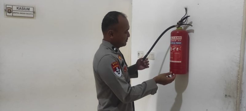 Selain itu, aspek keselamatan gedung juga menjadi prioritas. Petugas memeriksa ketersediaan dan kondisi Alat Pemadam Api Ringan (APAR) serta mengecek instalasi listrik guna mencegah risiko kebakaran. Kebersihan ruang penjagaan (SPK), gedung Mapolsek, dan asrama juga tak luput dari pantauan.