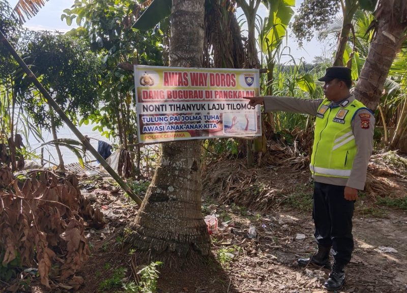 Selasa Pagi Siaga, Polsek Cempaka Pasang Rambu Longsor dan Pantau Debit Komering