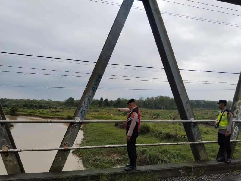 Antisipasi Dampak Cuaca Ekstrem, Personel Polsek Belitang I Pantau Debit Sungai Macak