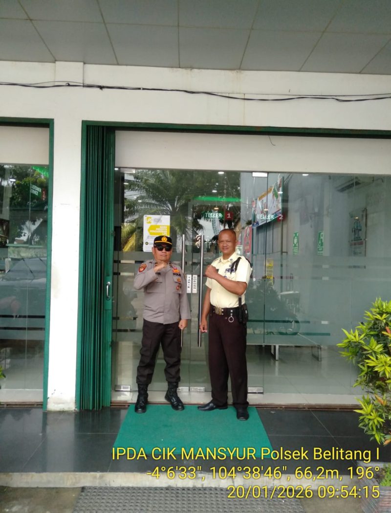Belitang – Dalam upaya menjaga stabilitas keamanan di pusat pusat ekonomi, jajaran Polsek Belitang I terus meningkatkan intensitas patroli di berbagai obyek vital. Pada Selasa pagi, 20 Januari 2026, Ipda Cik Mansyur melaksanakan giat patroli dialogis dan pengecekan keamanan di Bank Sumsel Babel Syariah Belitang. Kegiatan yang berlangsung pada pukul 09.56 WIB ini bertujuan untuk memastikan seluruh aktivitas keuangan masyarakat berjalan dengan lancar serta meminimalisir potensi gangguan kamtibmas di area perbankan.