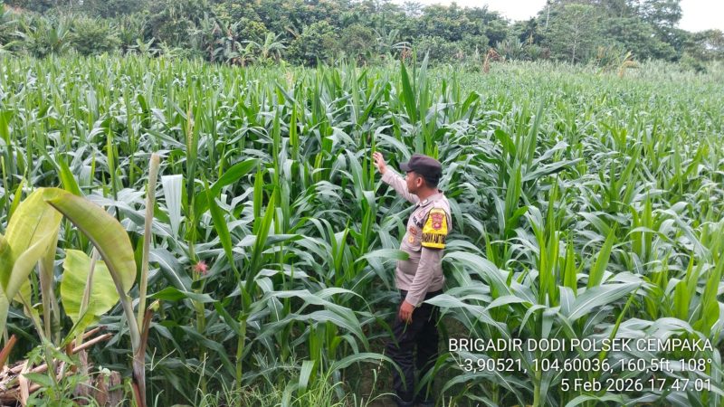 ​Di lokasi ini, Bhabinkamtibmas melakukan pengecekan terhadap lahan jagung seluas 1 hektar yang dikelola oleh Bapak Zailani, anggota Gapoktan setempat.