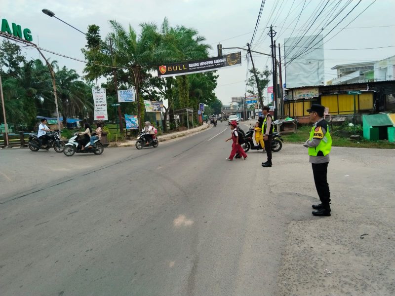 Pelayanan Humanis di Jalan Raya Di bawah cuaca pagi yang cerah, para personel tidak hanya mengatur arus lalu lintas, tetapi juga membantu anak-anak sekolah dan pejalan kaki menyeberang dengan aman. Langkah preventif ini terbukti efektif menekan angka pelanggaran lalu lintas kasat mata dan potensi kecelakaan (Laka Lantas) di titik-titik rawan tersebut.