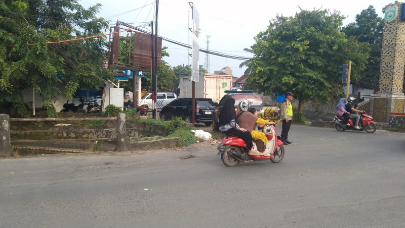 Personel yang bertugas, Aiptu Irwan Irwandi, Bripka Bambang Sukriyadin, S.H., dan Bripda Riyan Apit Sutiono, terlihat aktif mengatur arus lalu lintas di tengah padatnya warga yang memadati bahu jalan. Upaya ini dilakukan untuk mencegah terjadinya kemacetan panjang yang sering terjadi di jam-jam krusial antara pukul 16.00 hingga 18.00 WIB.