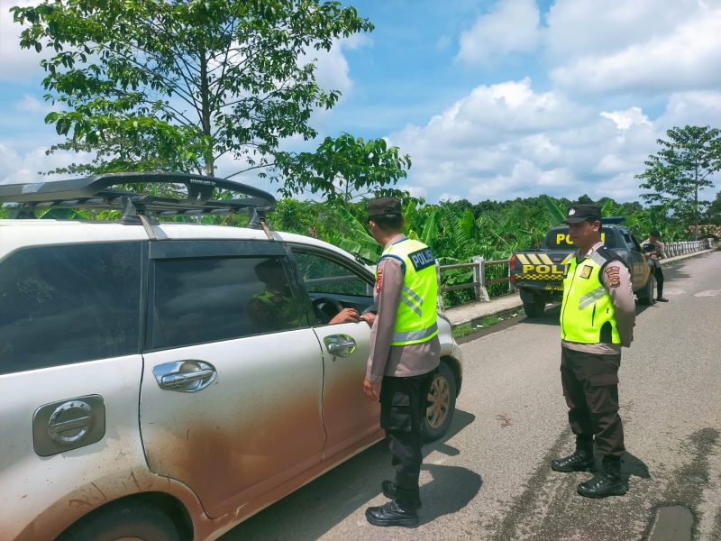 Jelang Waktu Ibadah Jumat, Empat Personel Polsek Cempaka Perketat Penyekatan dan Razia Kendaraan di Jalur Gunung Batu