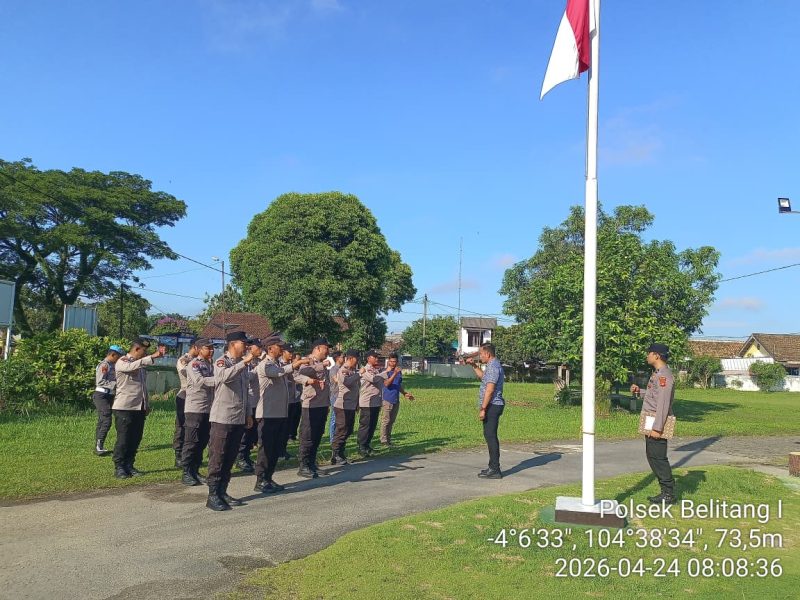 BELITANG – Mengawali tugas pelayanan kepada masyarakat, jajaran Polsek Belitang I Polres OKU Timur menggelar apel pagi rutin guna memastikan kesiapan dan kedisiplinan personel. Pada Jumat pagi (24/04/2026), apel yang berlangsung di halaman Mapolsek ini menjadi momentum untuk memperkuat komitmen anggota dalam menjalankan tugas kepolisian secara profesional.