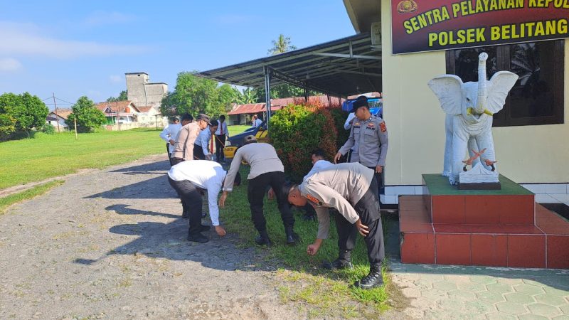 BELITANG – Pemandangan berbeda terlihat di Mako Polsek Belitang I pada Senin (27/4/2026) pagi. Puluhan personel yang biasanya berseragam rapi untuk pelayanan dan patroli, tampak kompak memegang sapu dan alat kebersihan. Mereka tengah berjibaku dalam program “Belida” atau Bersih Lingkungan dan Asri.